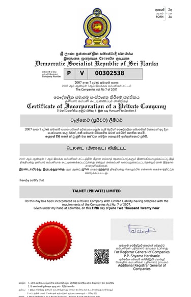 Talnet Private Limited is a Sri Lanka registered education consultancy company (Company Number PV 00302538) working with recognised Maltese education institutions. Our directors operate internationally to support students pursuing education opportunities in Malta.